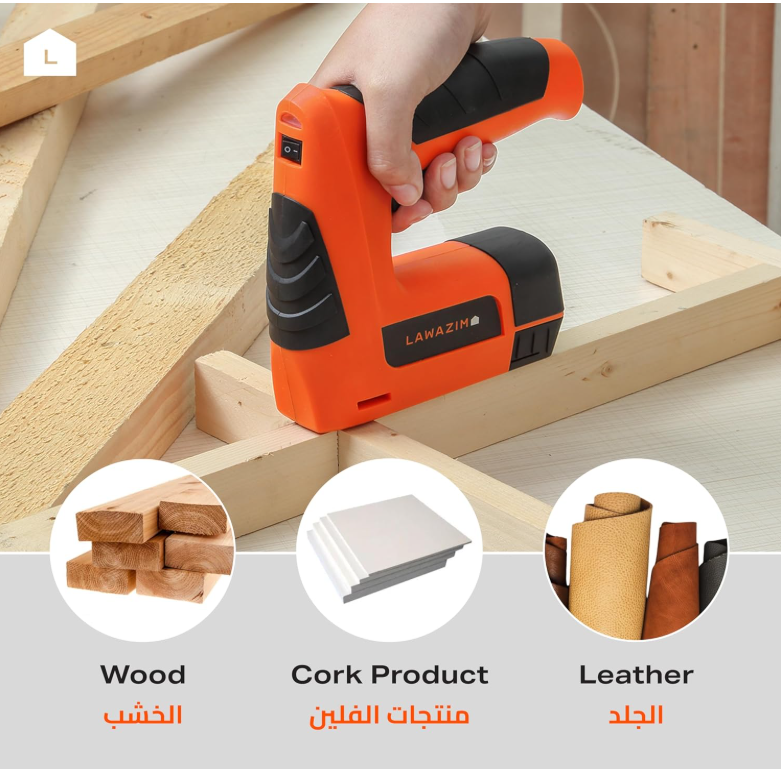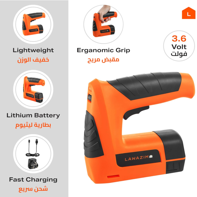 Lawazim Cordless Staple & Nail Gun 3.6V Lithium – Professional Brad, Pin & Wire Tacker for Upholstery, Framing, Roofing, Crafts, Fencing & Cable Management