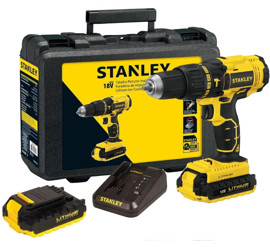 Stanley 18V Cordless Hammer Drill Kit (SCH20S2K) – 13mm, 45Nm Torque, with 2 Batteries & Case