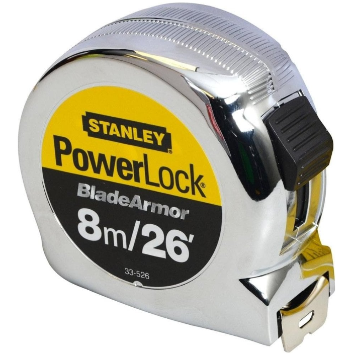 Each Stanley PowerLock tape features a robust design with a chrome-plated ABS case, ensuring long-lasting performance and comfortable handling. The high-contrast blade, often coated with a protective film, guarantees clear and accurate measurements for all your projects.