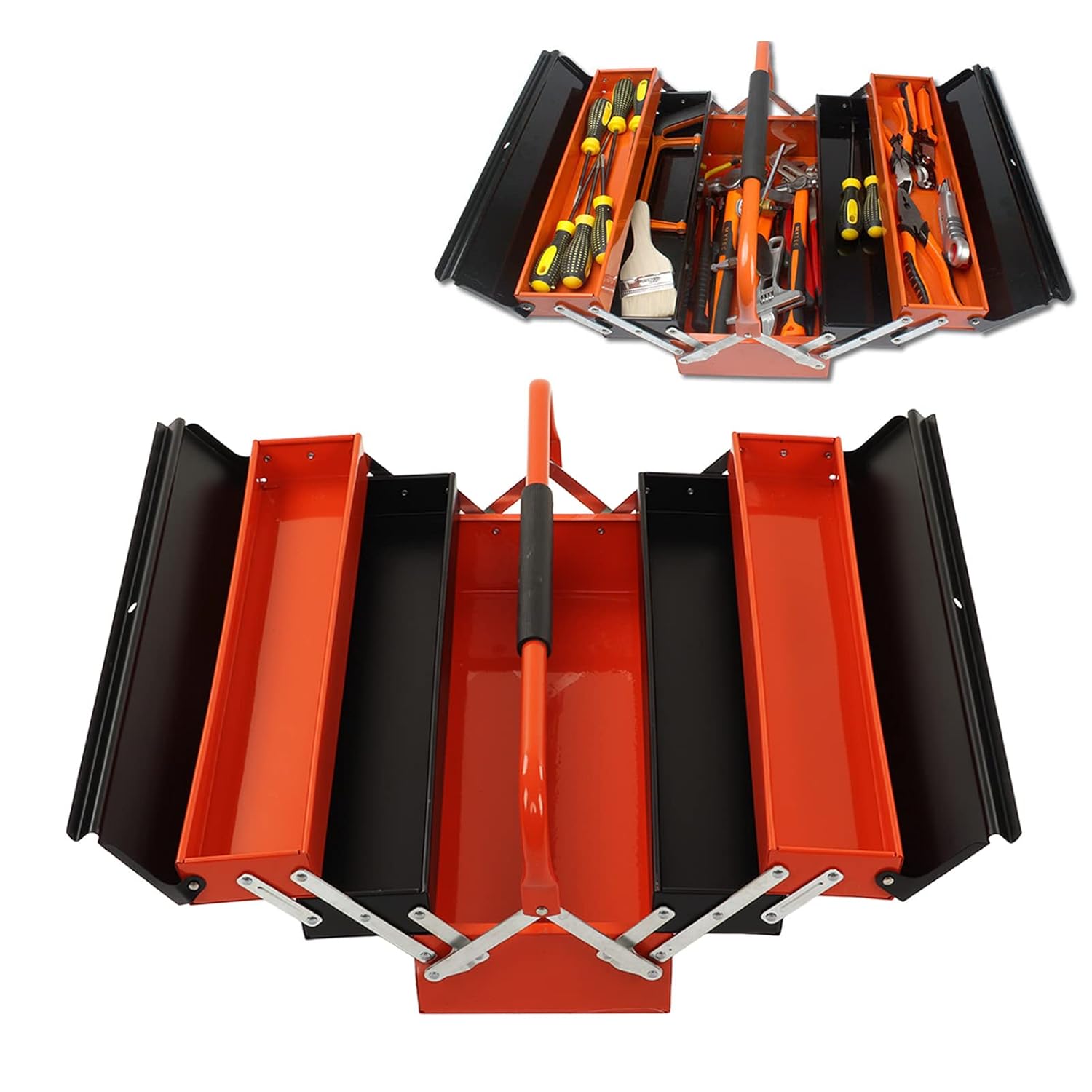 This versatile toolbox boasts a 5-compartment cantilever design, allowing the trays to open wide for full visibility and easy access to all your tools. The multiple compartments help keep your tools neatly organized, preventing clutter and making it simple to find what you need quickly.