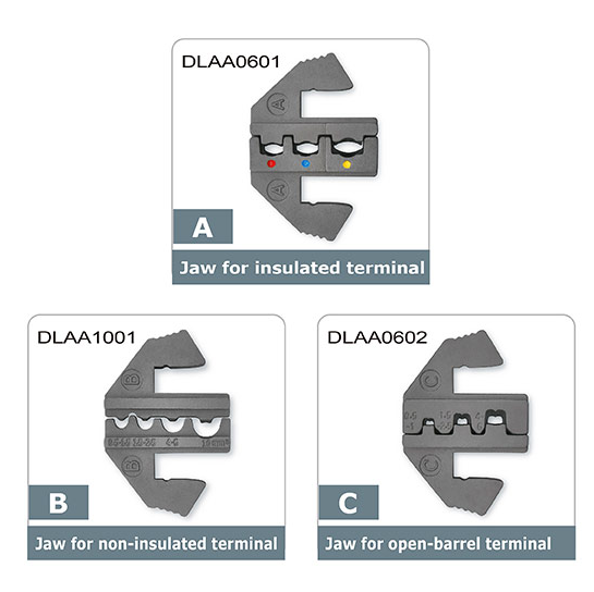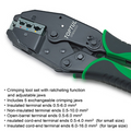 Wide Terminal Compatibility: Handles insulated (0.5-6mm²), non-insulated (1.5-10mm²), open-barrel (0.5-6mm²), small cord-end (0.5-4mm²), and large cord-end (6-16mm²) terminals.