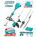 The TOTAL TSTLI2040386 is a versatile 4‑in‑1 cordless landscaping kit that combines the convenience of the P20S battery platform with the power of a 40V brushless motor (runs on two 20V batteries simultaneously). Quickly switch from trimming grass to clearing thick brush, pruning high branches, or shaping hedges using the quick‑connect shaft and included attachments. The efficient brushless powerhead delivers longer runtime, higher torque, and reduced maintenance, while the ergonomic D‑handle and adjustable strap increase comfort during extended use.