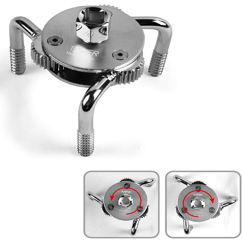 Tower OFW3L Adjustable 3-Leg Oil Filter Wrench (75-120mm) – 2-Way Key with 3/8" & 1/2" Drive
