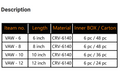 Available in multiple sizes commonly supplied in 6", 8", 10", and 12" formats.