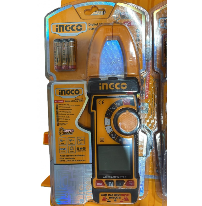 INGCO DCM66001 Digital AC Clamp Meter – True RMS, 4000 Counts, 600A AC, NCV, LowZ, Flashlight